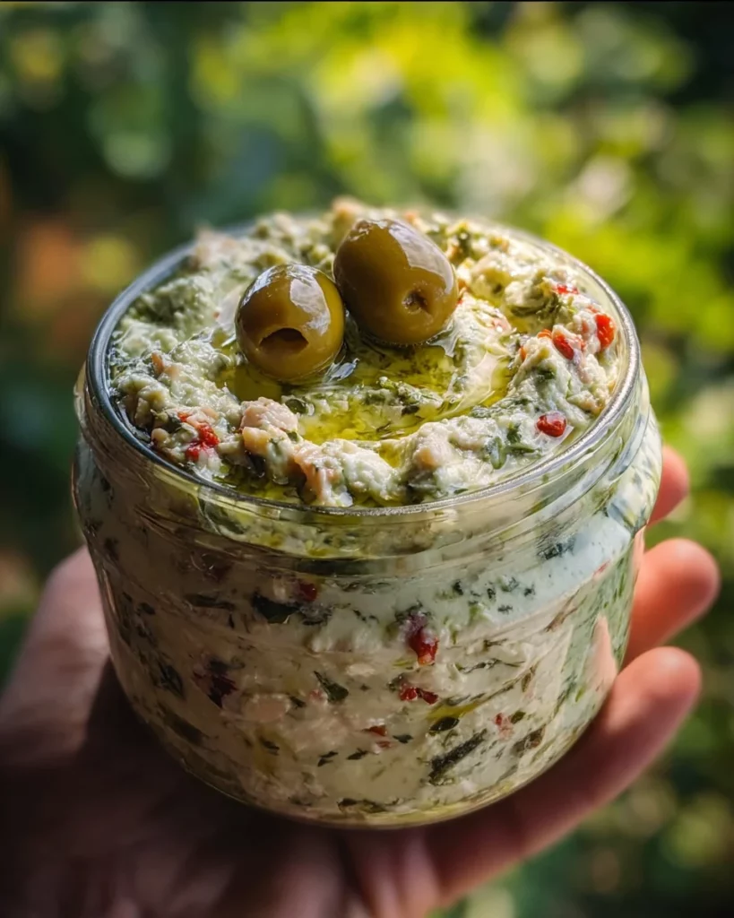 And let’s talk presentation: spooned into a small jar, drizzled with olive oil, topped with whole olives—it’s simple, but looks like it came from your favorite deli counter.