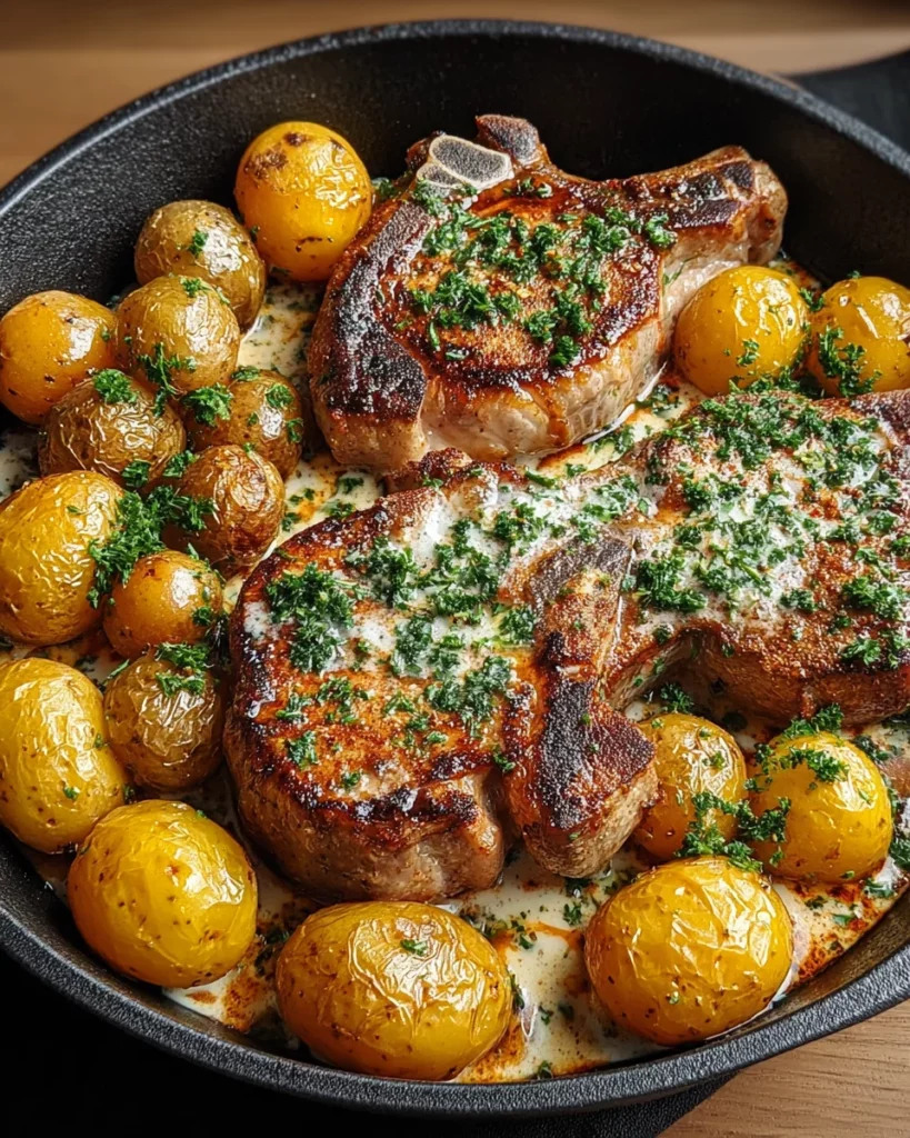 Creating One-Pan Creamy Ranch Pork Chops and Potatoes allows you to serve up joy, comfort, and flavor all in one dish. Each bite is a warm embrace, reminding us of cozy family dinners and laughter shared around the table. This recipe brings simplicity and satisfaction, making weeknight meals a breeze. Whether you’re cooking for a crowd or enjoying a quiet dinner, this meal will surely become a family favorite. So roll up your sleeves, grab your skillet, and let your kitchen be filled with the tantalizing aroma of love and deliciousness. Happy cooking!