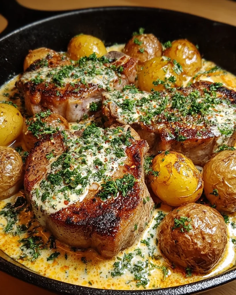 Creating One-Pan Creamy Ranch Pork Chops and Potatoes allows you to serve up joy, comfort, and flavor all in one dish. Each bite is a warm embrace, reminding us of cozy family dinners and laughter shared around the table. This recipe brings simplicity and satisfaction, making weeknight meals a breeze. Whether you’re cooking for a crowd or enjoying a quiet dinner, this meal will surely become a family favorite. So roll up your sleeves, grab your skillet, and let your kitchen be filled with the tantalizing aroma of love and deliciousness. Happy cooking!