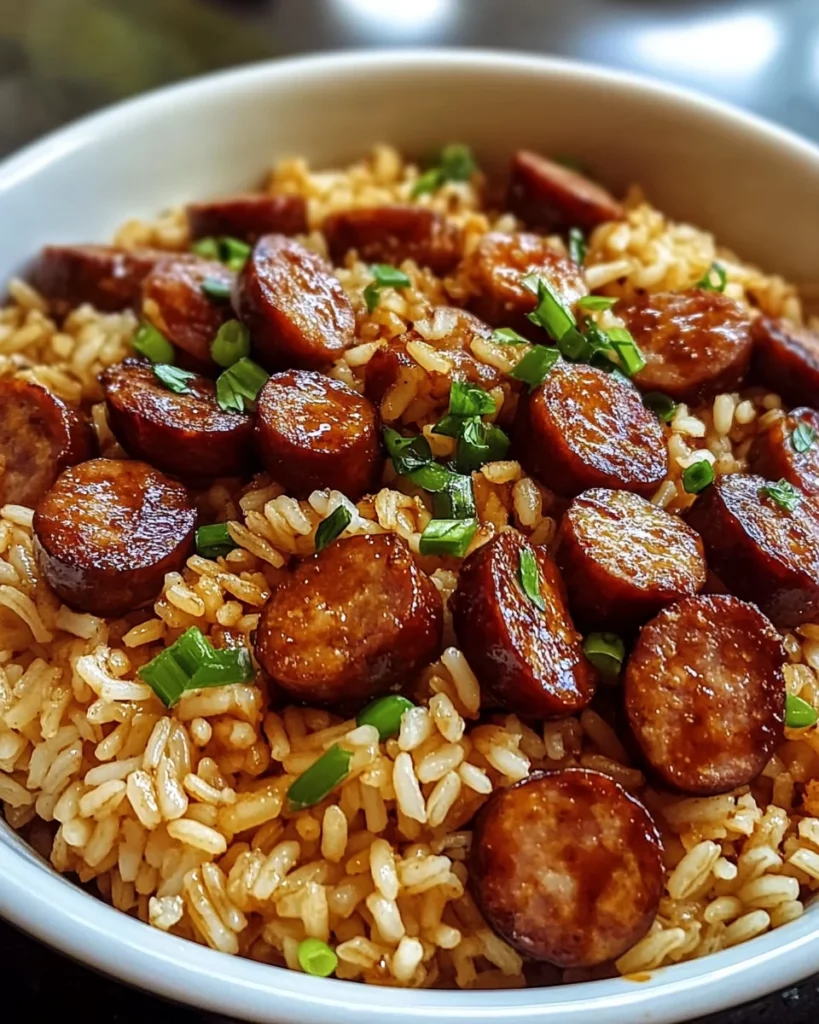 One-Pan Sweet and Tangy BBQ Sausage Rice is a delicious and easy-to-make meal that combines smoky sausage, flavorful rice, and a sweet and tangy BBQ sauce.