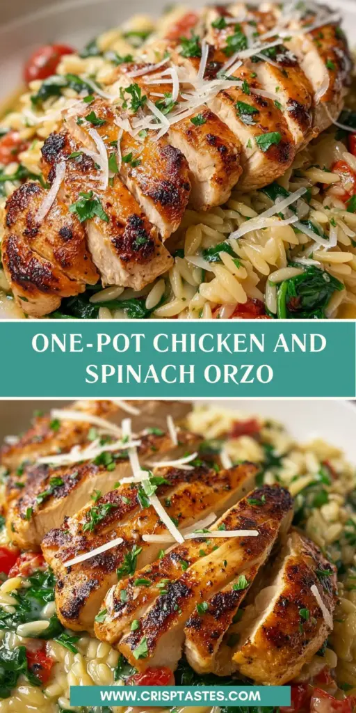 A creamy and delicious one-pot dish featuring chicken, spinach, and orzo pasta, perfect for a comforting meal.