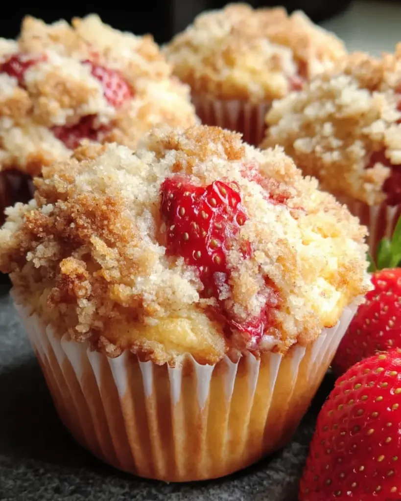 Orange Strawberry Muffins Streusel are delicious, moist muffins featuring the vibrant flavors of orange and fresh strawberries, topped with a crunchy streusel crust.