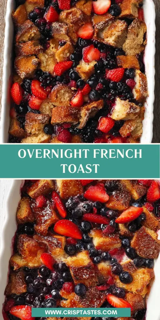 This Overnight French Toast is a game-changer for busy mornings! It’s not only easy to make, but it also bursts with flavor, making every bite feel like a hug. You can prep it the night before, which cuts down on breakfast chaos. Plus, the creamy, custardy layers of French bread topped with berries create a delightful dish that will please everyone at the table. Trust me, it’s the breakfast you’ll always want to wake up to!