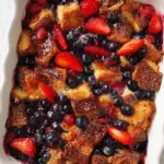 A delicious and easy make-ahead breakfast dish that combines layers of bread with a rich egg mixture, baked to perfection with a crumbly topping and berries.