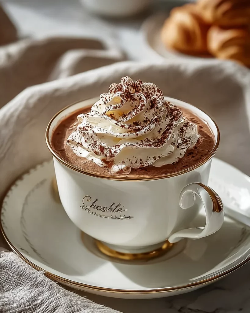 Finally, it’s time to pour your creation into mugs! You can top your Paris Hot Chocolate with whipped cream or fluffy marshmallows for that extra indulgence. A sprinkle of cocoa powder or shaved chocolate adds a beautiful touch too. Settle down with your cozy cup, and savor every sip of this chocolatey bliss!