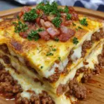 Bringing my Parmesan Garlic Bacon Cheeseburger Lasagna to the dinner table is like inviting comfort and joy into our home. Each layer is a reminder of family gatherings, laughter, and shared meals that warm the heart. The creamy sauce, savory meat, and crispy bacon create a symphony of flavors that brings everyone together, creating lasting memories. I hope you feel inspired to try this recipe and share it with your loved ones. Because nothing says “I love you” quite like a heartfelt meal that satisfies both the belly and the soul!