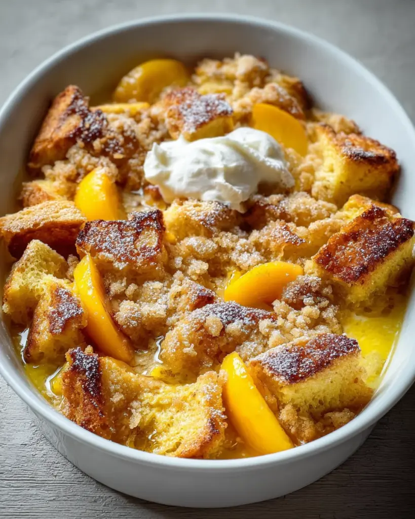 A delightful Peach Cobbler French Toast Bake, perfect for brunch or a special breakfast.