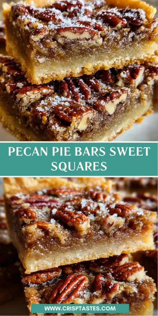 In the hustle and bustle of life, these Pecan Pie Bars Sweet Squares remind us that joy can be found in simple, delicious moments. The combination of a buttery crust and a rich, nutty filling creates a comforting treat that delights every palate. Whether it’s a family gathering, a cozy night in, or simply a sweet escape after a hectic day, these bars bring smiles and satisfaction. A slice of home-baked goodness can turn an ordinary day into something extraordinary. So roll up your sleeves and indulge; happiness is just a bite away!