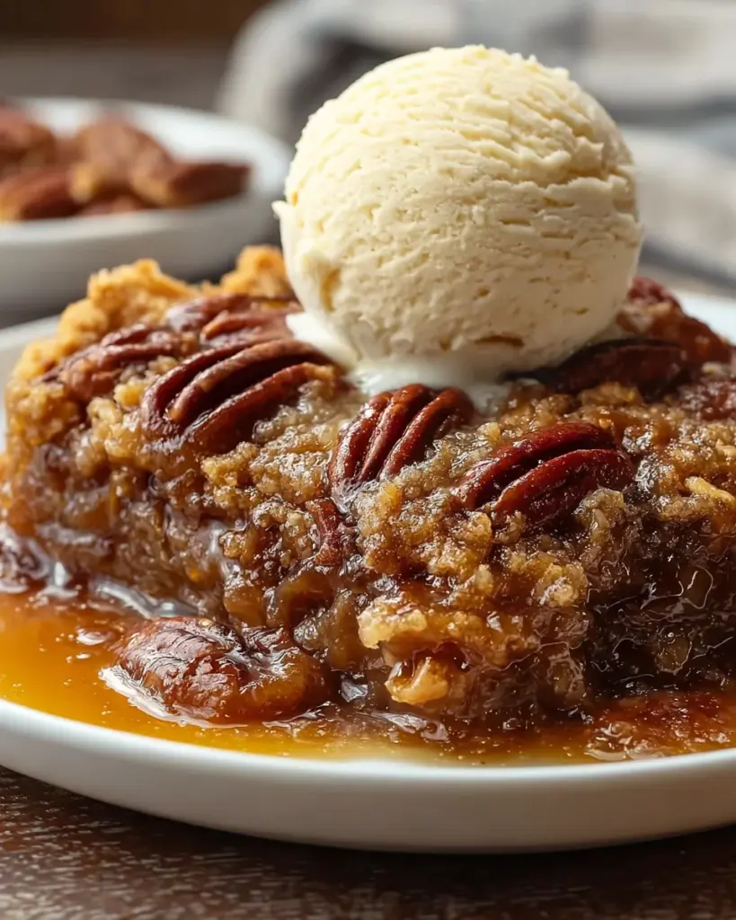 A warm, gooey, and buttery dessert that tastes just like classic pecan pie — but even easier to make! This treat is pure Southern comfort in every bite.
