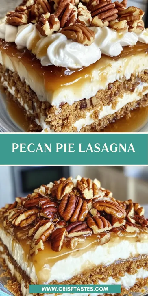 Pecan Pie Lasagna is a no-bake dessert that combines layers of a graham cracker crust, cream cheese filling, and a rich pecan pie layer, creating a delicious and easy-to-make treat.