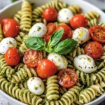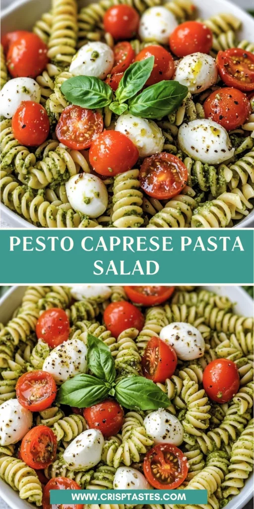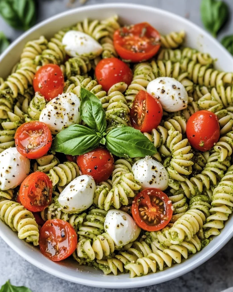 A refreshing and vibrant Pesto Caprese Pasta Salad that combines the flavors of fresh tomatoes, mozzarella, and vibrant pesto for a perfect meal or side dish.