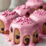 If you love desserts that are both beautiful and delicious, Pink Cookie Dough Mini Cakes are an absolute must-try. These charming bite-sized treats combine three irresistible layers: a soft pink vanilla cake, a creamy egg-free cookie dough dome, and a smooth pink chocolate glaze that drips elegantly down the sides.