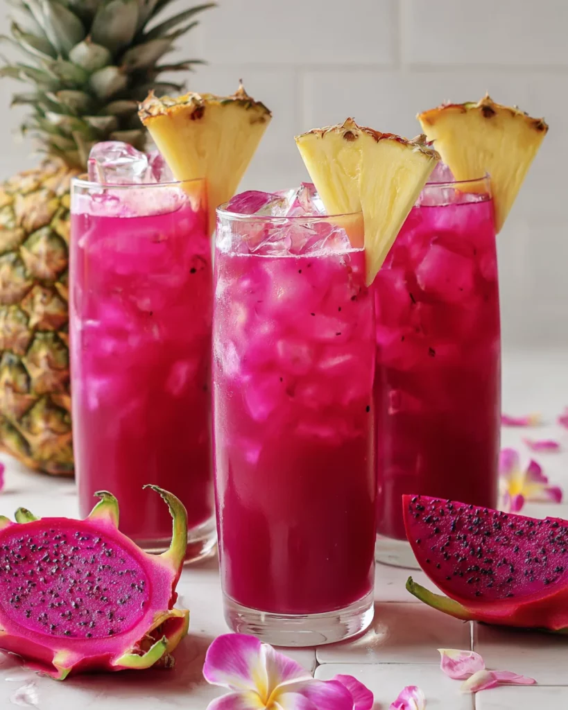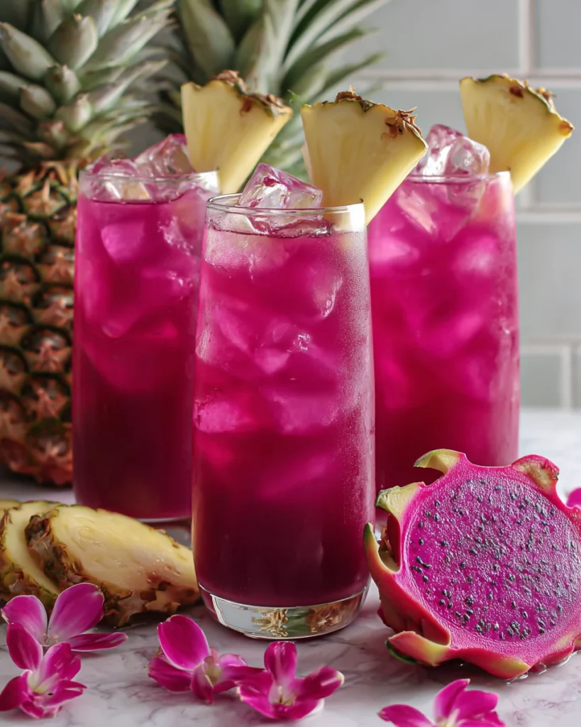 Getting your tropical fix with the Pink Dragonfruit Pineapple Rum Fizz is easy and fun. Let’s dive into the steps to create this refreshing drink that’s perfect for any moment. Are you ready to impress your taste buds?