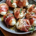 These Prosciutto Wrapped Mozzarella Bites are a delightful appetizer that blends the rich flavor of prosciutto with creamy mozzarella, infused with herbs for a savory treat.
