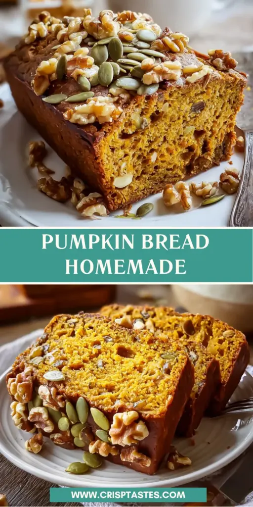 There’s something magical about baking pumpkin bread homemade, especially in the fall. The act of mixing the ingredients, the aroma wafting through the house, and the joy of sharing the finished loaf with loved ones makes it all worthwhile. Each slice is a warm hug, filled with cozy spices and sweet memories. Whether enjoyed with a cup of tea or gifted to a friend, this pumpkin bread is more than just a treat—it’s a heartfelt gesture. I can’t wait for you to experience the joy this recipe brings into your kitchen. Happy baking!