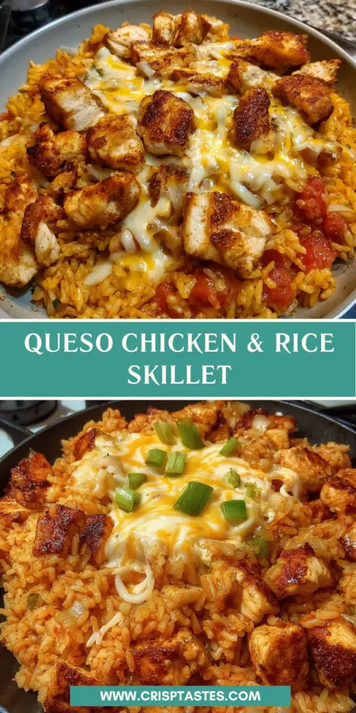 There’s something special about gathering around the table with a warm dish of Queso Chicken & Rice Skillet. It brings smiles and laughter, turning an ordinary weeknight into a cherished family moment. This recipe not only satisfies those hungry tummies but also makes your home feel cozy and inviting. With its creamy queso and flavorful chicken, it’s bound to become a staple on your dinner rotation. Whether you’re celebrating a special occasion or just enjoying a casual meal, this delightful dish is here to create lasting memories. Trust me, your family will be asking for seconds!