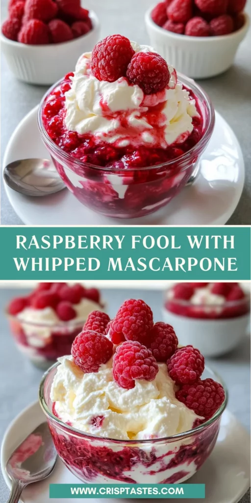 Creating this Raspberry Fool with Whipped Mascarpone has been a delightful journey, and I hope you feel that joy, too! It’s the perfect way to celebrate even the simplest of occasions. The vibrant colors and creamy textures not only tantalize the taste buds but also lift spirits. Whether it’s a family gathering or just a sweet treat on a hectic day, this dessert brings smiles all around the table. So, go ahead! Dive into this culinary adventure, and let each spoonful remind you of the pure pleasure that a homemade dessert can bring.