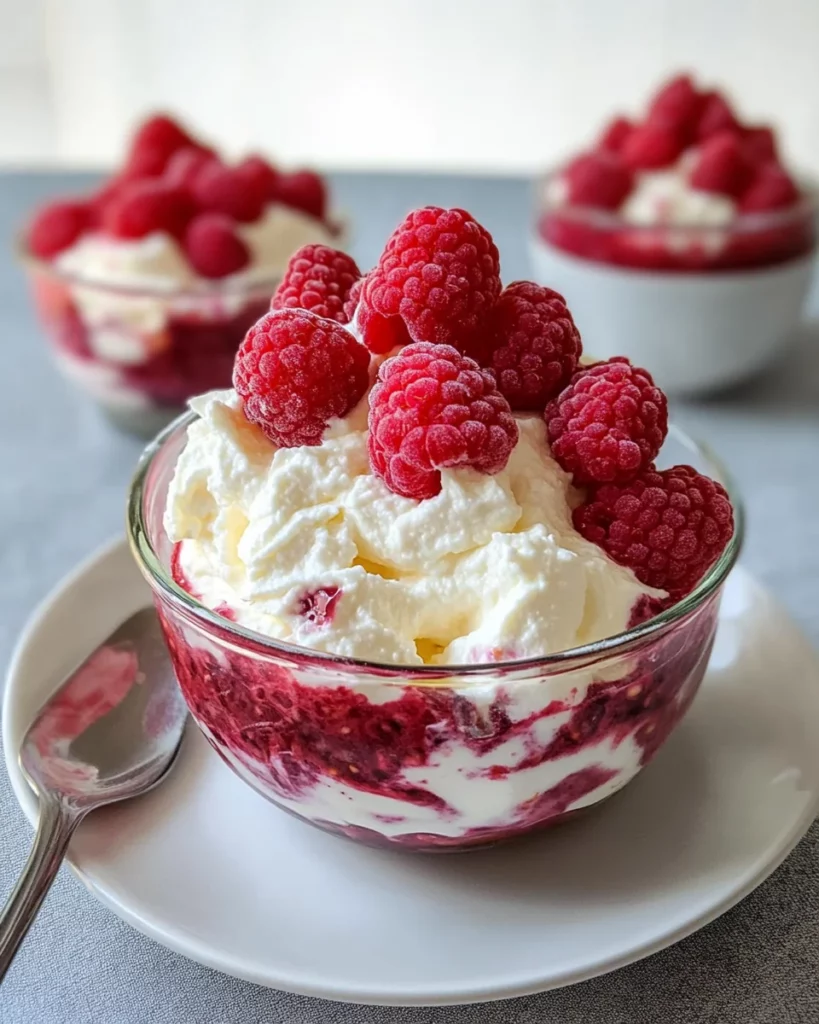 - Chill for 1 hour before serving. Top with fresh raspberries when ready to serve.