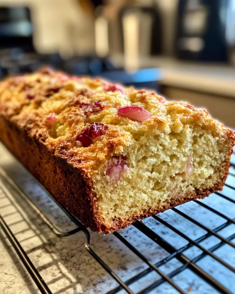 A moist and delicious Rhubarb Bread that balances tartness and sweetness, perfect for any occasion.