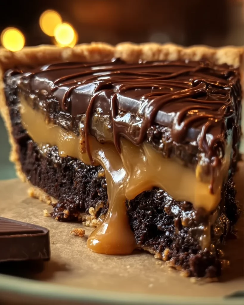 This pie tastes like everything good in life: rich chocolate, warm caramel, buttery crust, and just a hint of salt to make the sweetness shine. It’s sweet but balanced, chewy and gooey without being messy, and it delivers that nostalgic, can’t-wait-for-the-next-bite feeling.
