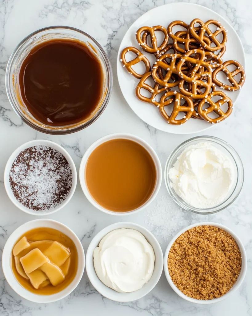 Ingredients for Salted Caramel Pretzel Cheesecake Recipe
