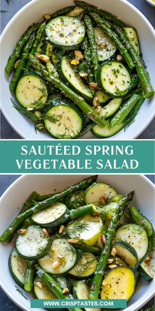 Creating this sautéed spring vegetable salad is more than just cooking; it’s about celebrating the season’s bounty. The vibrant colors and fresh flavors bring joy to my kitchen, reminding me of sunny days and family gatherings. Each bite is a delightful crunch, a perfect balance of textures and tastes. Whether you’re serving it at a dinner party or enjoying it solo, this salad is sure to impress. I hope it brings as much happiness to your table as it does to mine. So, roll up your sleeves and dive into this delicious springtime treat!