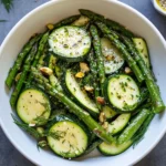 In a small mixing bowl, combine the extra virgin olive oil, white wine vinegar, fresh lemon juice, honey, and Dijon mustard. Add a pinch of kosher salt and a few turns of cracked black pepper. Whisk everything together until it’s well blended. This dressing is the magic touch that ties all the flavors together, making your sautéed spring vegetable salad truly irresistible!