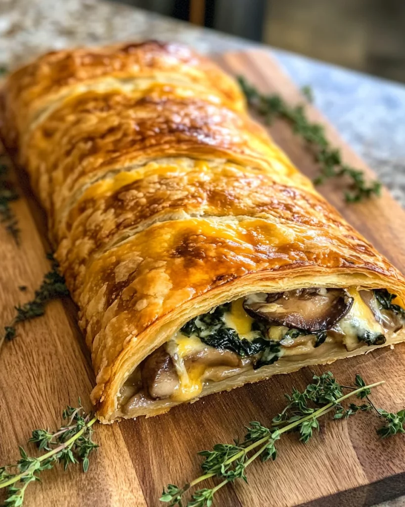 This savory mushroom and Gruyère puff pastry braid is flaky, golden, and packed with flavor. Sautéed mushrooms, garlic, and fresh thyme are folded into melty Gruyère cheese, then wrapped in buttery puff pastry and baked until beautifully crisp. It’s an elegant yet simple dish perfect for brunch, dinner parties, or holiday tables.