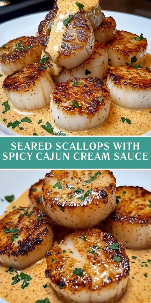 A delicious recipe for seared scallops served with a spicy Cajun cream sauce, perfect for a gourmet meal.