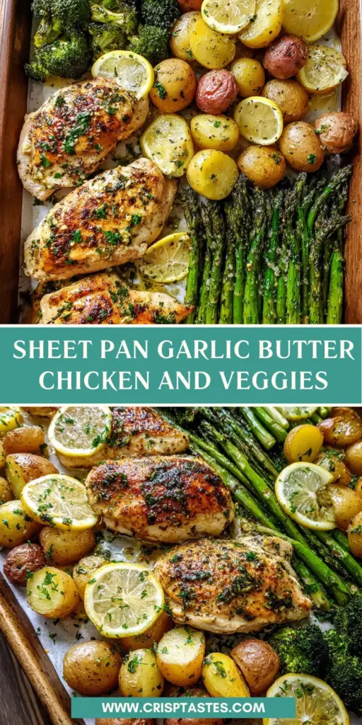 A delicious and easy recipe for Sheet Pan Garlic Butter Chicken and Veggies, perfect for a quick weeknight dinner.