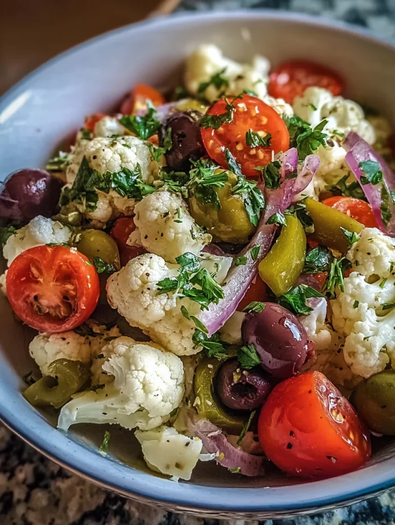 A refreshing Sicilian cauliflower salad that combines bright flavors from olives, capers, and herbs for a delightful side dish or main course.