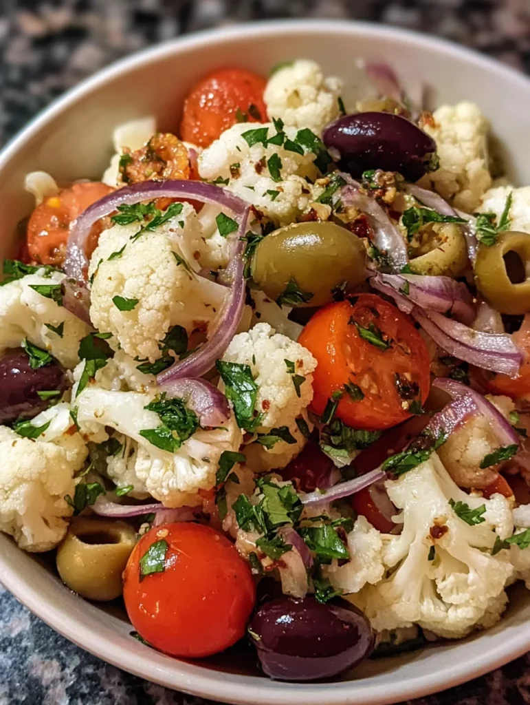 A refreshing Sicilian cauliflower salad that combines bright flavors from olives, capers, and herbs for a delightful side dish or main course.