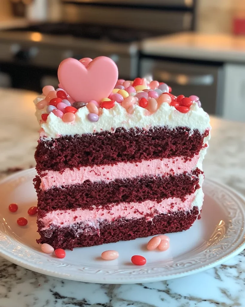 - Chocolate Version: Swap the red velvet layer for a rich chocolate cake using cocoa powder and chocolate frosting.