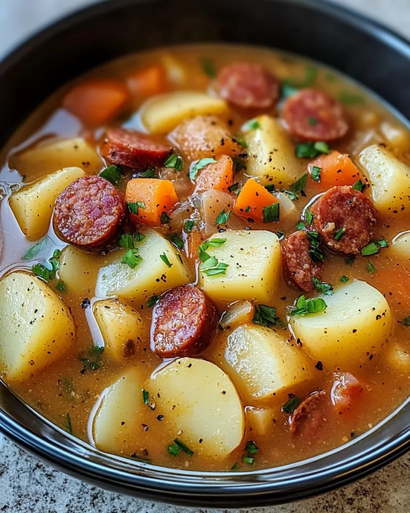 Transfer the browned sausage into your slow cooker. Next, add the diced russet potatoes, bell pepper, onion, celery, carrots, and minced garlic. Sprinkle in the Cajun seasoning, salt, and black pepper. Give everything a good stir to combine all those vibrant flavors. It’s like a party in your slow cooker!