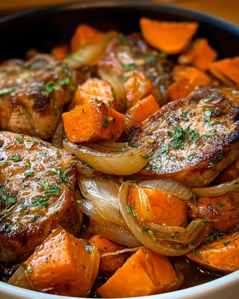 - Cook: Cover and cook on LOW for 6–7 hours or HIGH for 3–4 hours, until pork chops are fork-tender and sweet potatoes are soft but not mushy.