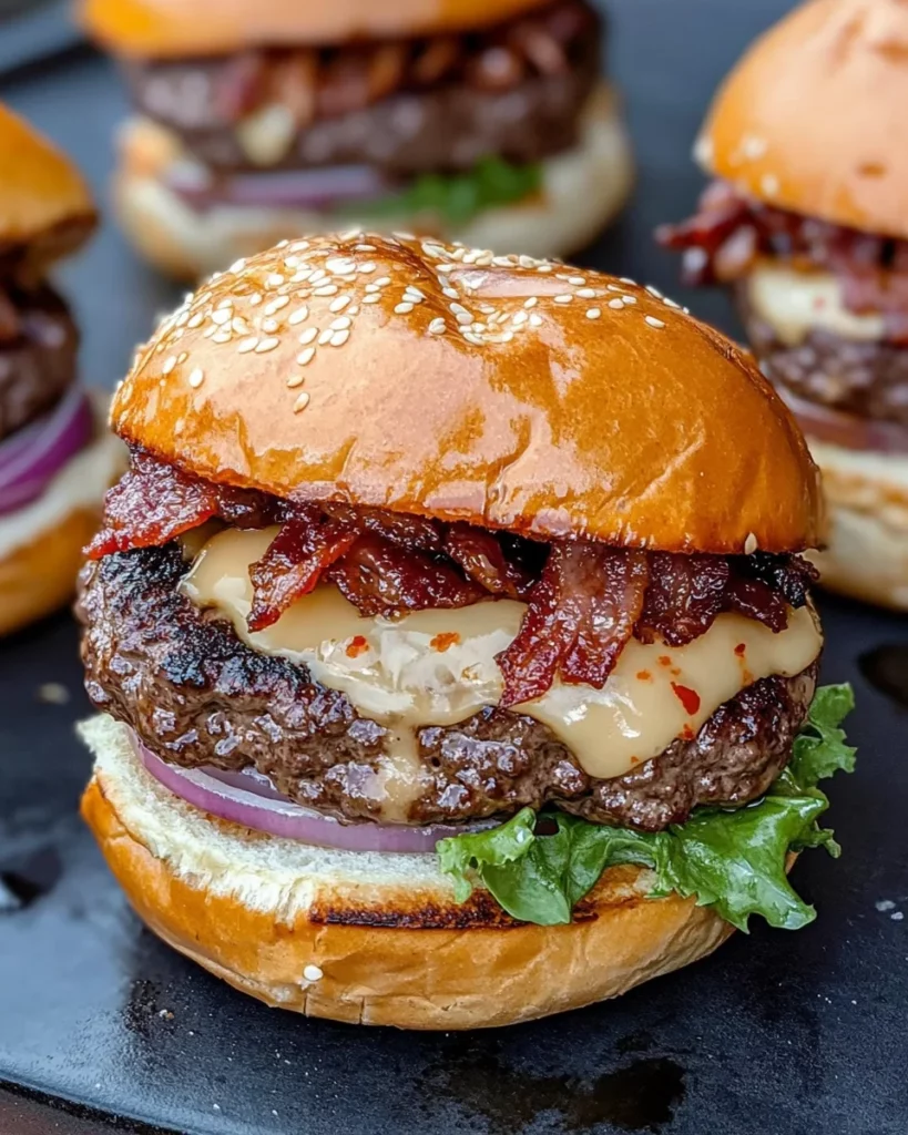 Delicious smash burgers topped with a rich Baconnaise sauce, perfect for any burger lover.