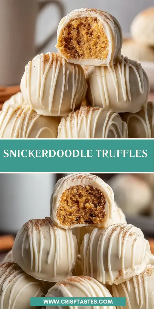 Can I use a different type of chocolate? Yes! While white chocolate creates that classic sweet flavor, you can experiment with dark or milk chocolate for a different taste. Each variation brings a unique twist to this Snickerdoodle Truffles recipe.