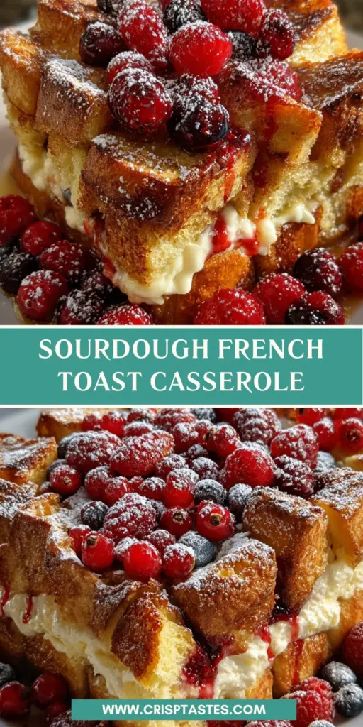 Creating this Sourdough French Toast Casserole isn’t just about whipping up a delicious breakfast; it’s about bringing joy to your table. The tender, custardy bread, paired with a sweet and tangy berry compote, transforms any morning into a special occasion. Whether you’re gathering your family for brunch or easing into a quiet day, this casserole is a warm hug for your taste buds. Each bite carries the love and effort you put in, making it more than just a meal—it’s a heartfelt experience. I hope this recipe brings as much joy to your home as it has to mine!