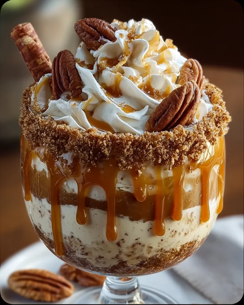 A delicious and creamy milkshake inspired by the flavors of caramel pecan pie, perfect for a sweet treat.