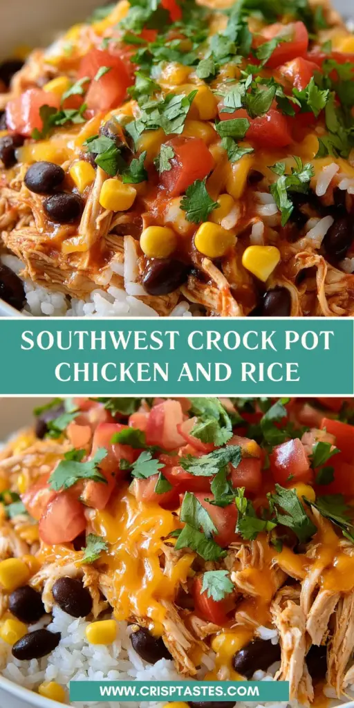 A delicious and easy-to-make Southwest Crock Pot Chicken and Rice, perfect for a family dinner.