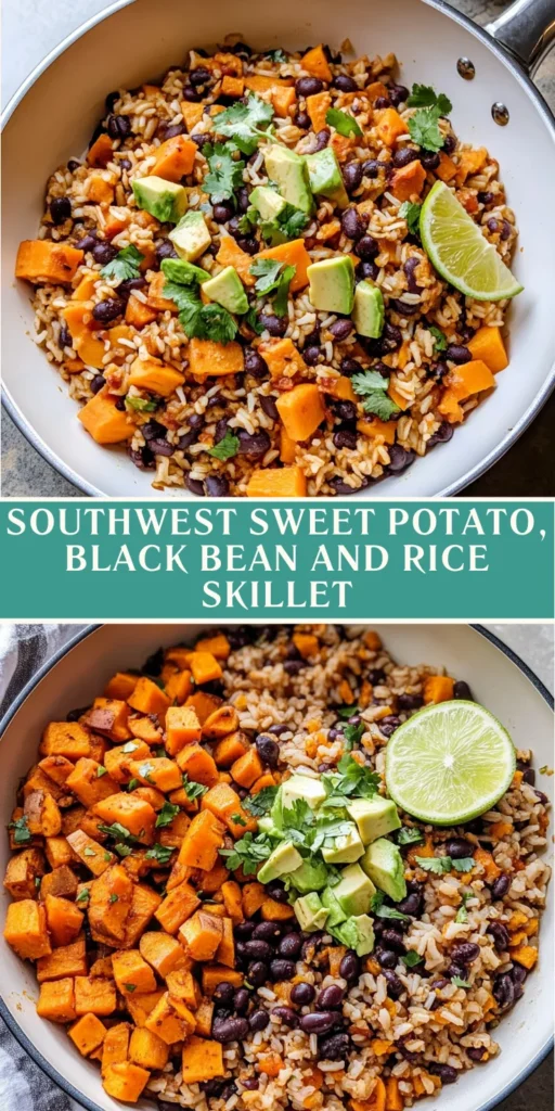 Welcome to a culinary adventure that’s as vibrant as it is comforting! The Southwest Sweet Potato, Black Bean and Rice Skillet is my go-to dish when life gets hectic. It’s a quick solution for busy days, packed with flavor and nutrition. Imagine a colorful medley of sweet potatoes, black beans, and spices, all coming together in one skillet. This recipe not only satisfies your hunger but also warms your heart. Whether you’re feeding a family or just yourself, this dish is sure to impress and delight everyone at the table!