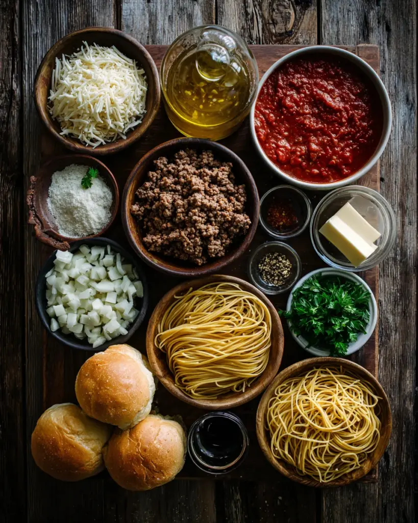 Gathering the right ingredients is the first step towards a delicious meal, and I promise, these Spaghetti Garlic Bread Bowls use a fantastic mix of flavors. Here’s what you’ll need: