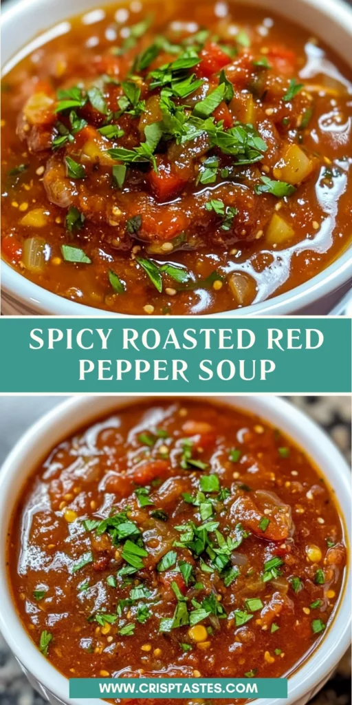 This Spicy Roasted Red Pepper Soup is more than just a meal; it’s a celebration of flavors that can bring a smile to anyone’s face. Whether you’re seeking warmth on a chilly evening or trying to impress friends at a gathering, this soup delivers every time. The simplicity of the recipe makes it accessible, even for those with a packed schedule. I love how it comforts and nourishes, reminding us that good food can turn any day around. So gather your ingredients, stir up some joy, and enjoy every spoonful of this delightful culinary adventure!