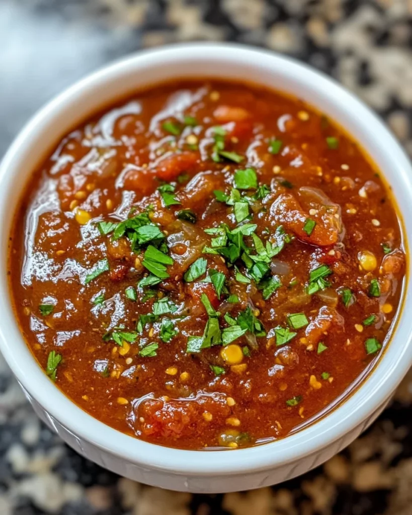 A rich and flavorful soup made with roasted red peppers and spices, perfect for a quick and comforting meal.