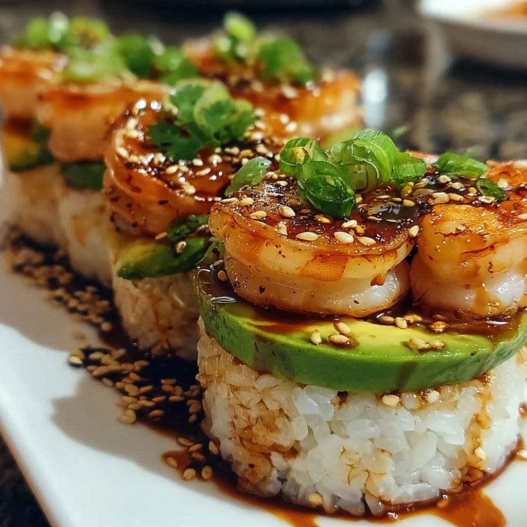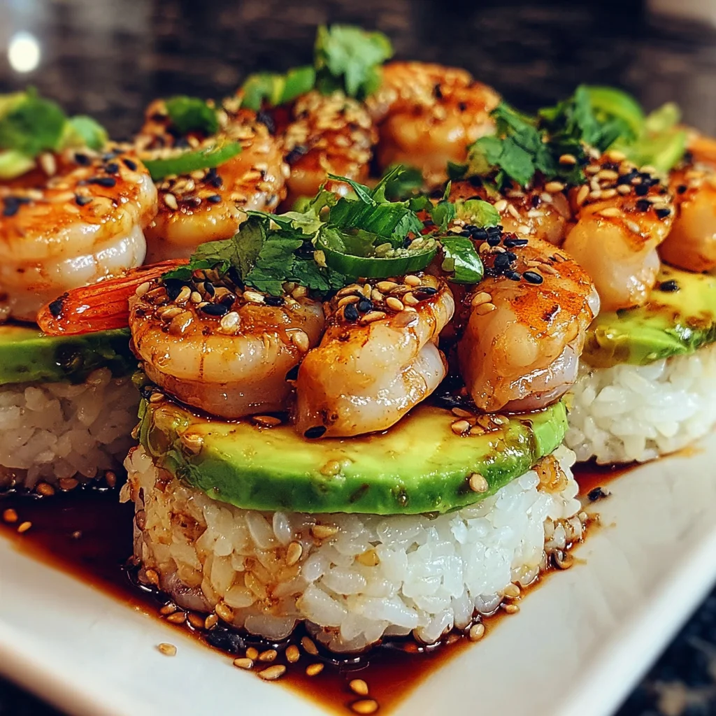 Spicy Shrimp Sushi Stacks are a delicious and visually appealing sushi dish that combines spicy shrimp, sushi rice, avocado, and cucumber in a layered presentation.