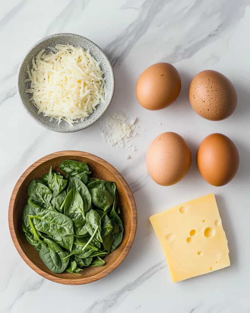 Gathering the right ingredients is the first step to creating a delicious Spinach and Cheese Omelette. Here’s what you’ll need: