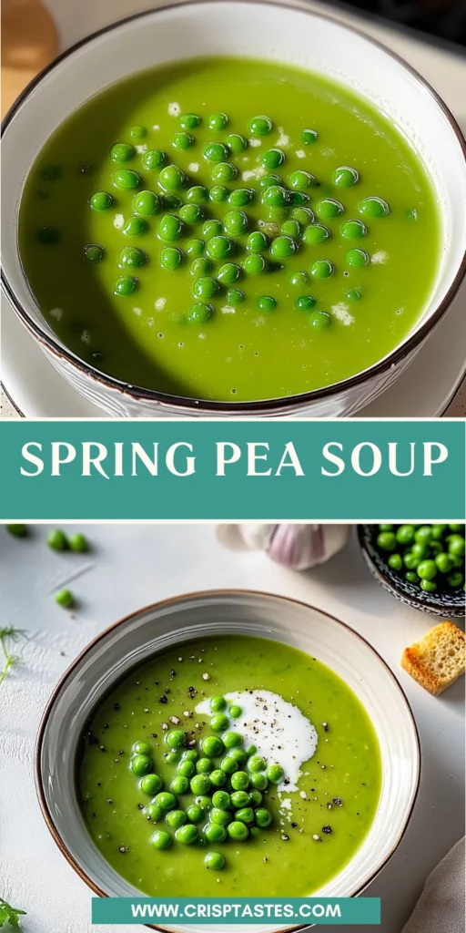 Creating this Spring Pea Soup is more than just cooking; it’s about embracing the joy of spring and sharing warmth with loved ones. The vibrant colors and creamy texture bring a smile to my face every time I serve it. It’s a dish that invites conversation and laughter around the table, making busy days feel a little lighter. Whether you’re enjoying it as a light meal or a fancy appetizer, this soup is sure to become a cherished recipe in your home. So grab your ingredients and let the flavors of spring inspire you!
