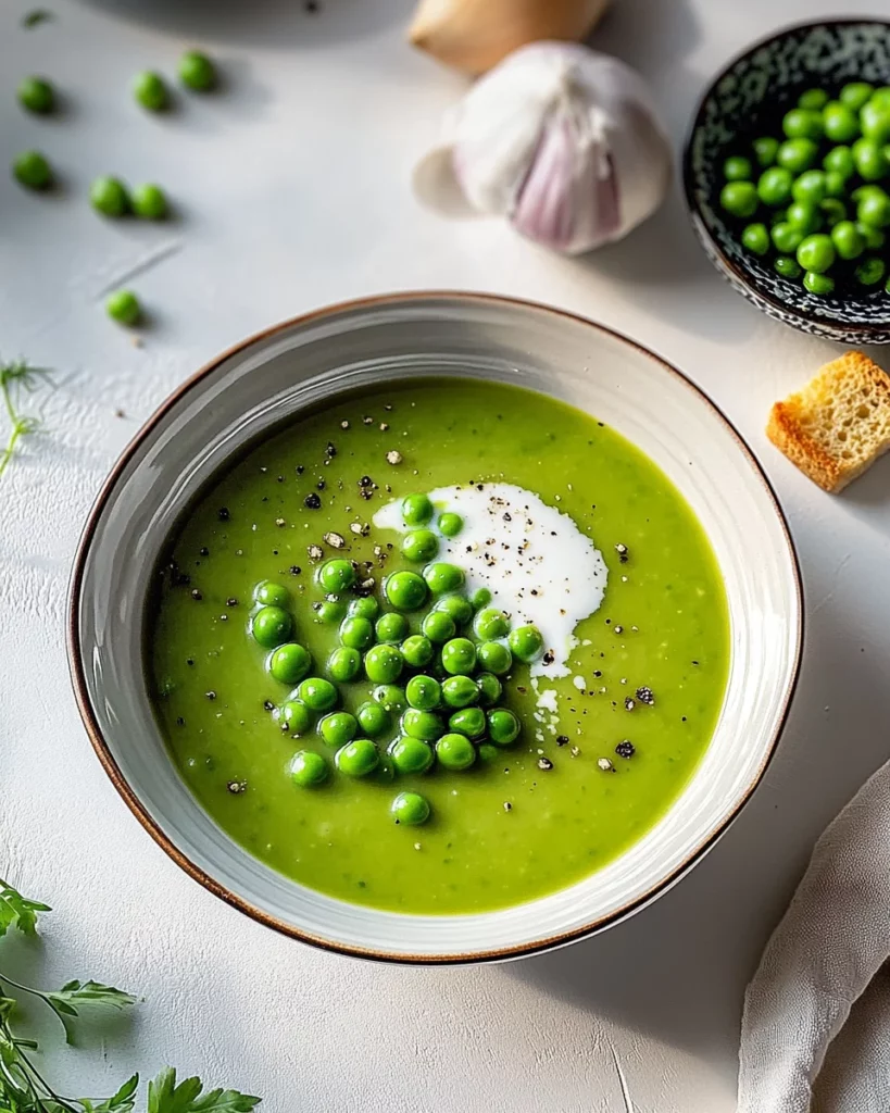 Finally, ladle the soup into bowls and garnish with fresh herbs or croutons if you like. A sprinkle of mint or basil adds a pop of color and flavor. Serve warm, and watch your family enjoy every spoonful of this delightful Spring Pea Soup!
