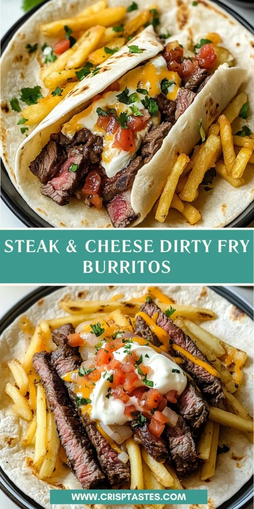 When life gets busy, I often find myself searching for that perfect meal solution. Enter the STEAK & CHEESE DIRTY FRY BURRITOS! These delightful wraps are more than just food; they’re my way of bringing comfort and joy to the dinner table. Imagine a warm tortilla embracing a treasure trove of seasoned steak, crispy fries, and gooey melted cheese. It’s an easy meal that feels like a warm hug at the end of the day. Your family will rave about it, and you’ll love how quickly it comes together!