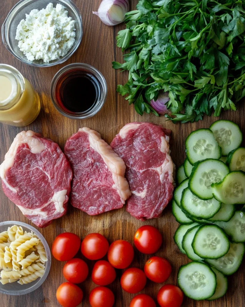 Gathering the right ingredients is the first step to creating a delightful Steak Pasta Salad. Here’s what you’ll need: